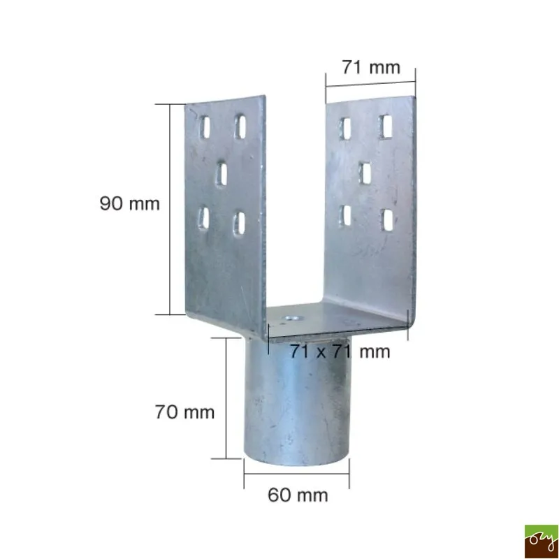 Nástavec "U" na zemní šroub o rozměrech 70x70x90x60mm je určen k přichycení hranolu k zemnímu šroubu o průměru 68 mm do země.
