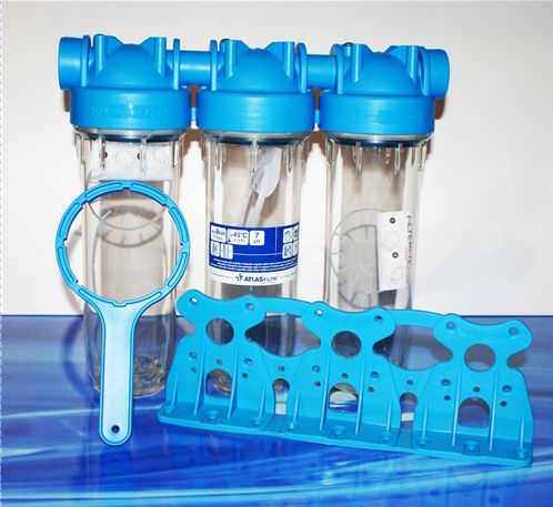 Filtr 7" JUNIOR TRIO 1/2" se používá k filtraci pitné vody v domácnostech a průmyslu. Filtr se vyrábí i v provedení 3/4" a 1".