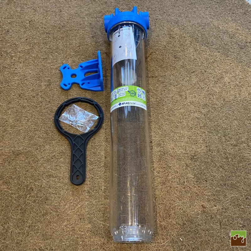 Filtr 20" MASTER 1" vnitřní závit se používá k úpravě užitkové a pitné vody v domácnostech a průmyslu. 20" Obal filtru se skládá z plastové hlavy s mosazným závitem a plastové nádoby. Do nádoby se vkládá