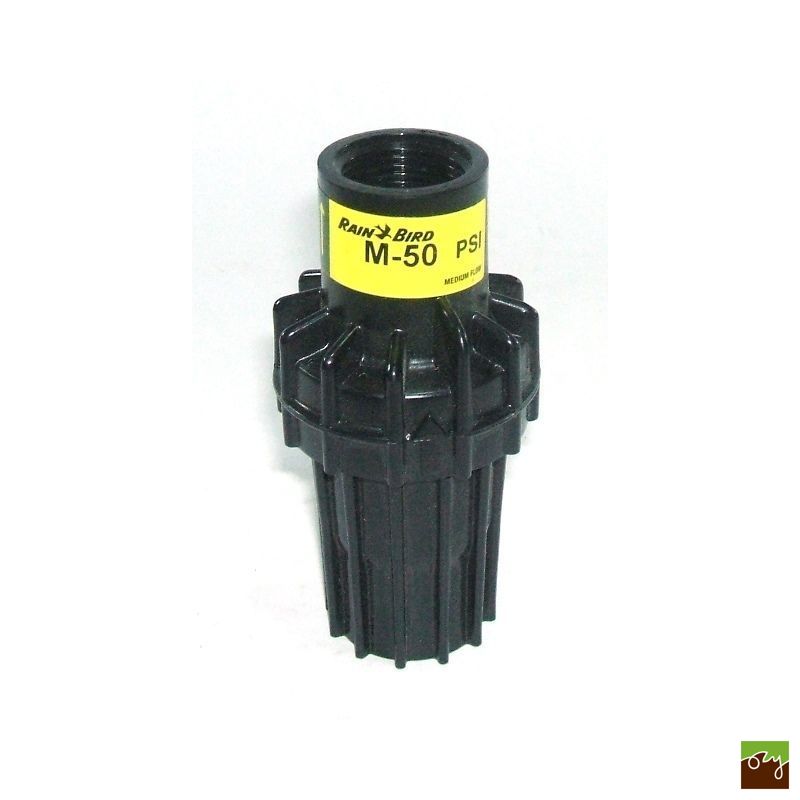 Regulátor tlaku PSI-M50 značky Rain Bird má přednastavený výstupní tlak 3,5 baru. Tento mechanický regulátor je navržen k zajištění konstantního výstupního tlaku i při kolísavém vstupním tlaku. Používá se v rozvodech automatické závlahy, hlavně pro větve mikro a kapkové zavlahy.