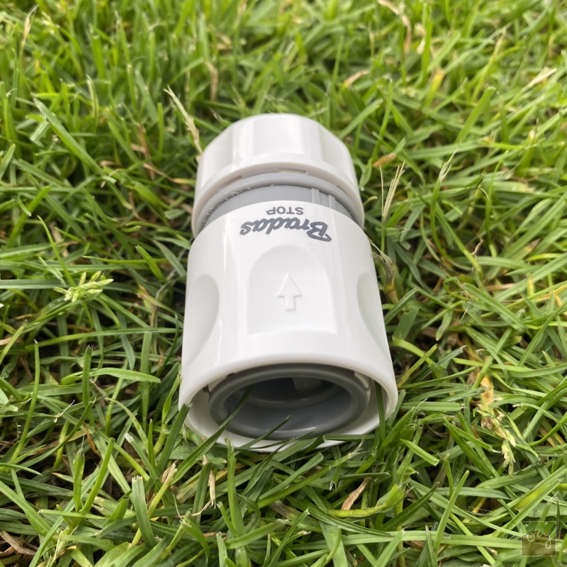STOP rychlospojka 1/2" se zabudovanou zpětnou klapkou je standardizovaná plastová spojka pro zahradní hadice na připojení zdroje vody nebo potřebného příslušenství k hadici.