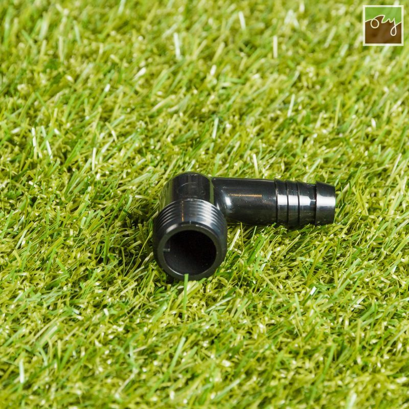 SPX-FLEX koleno Ø17,5mm s vnějším závitem 1/2", je především určeno ke spojování SPXFLEX potrubí s menšími zavlažovači pod úhlem 90°.
