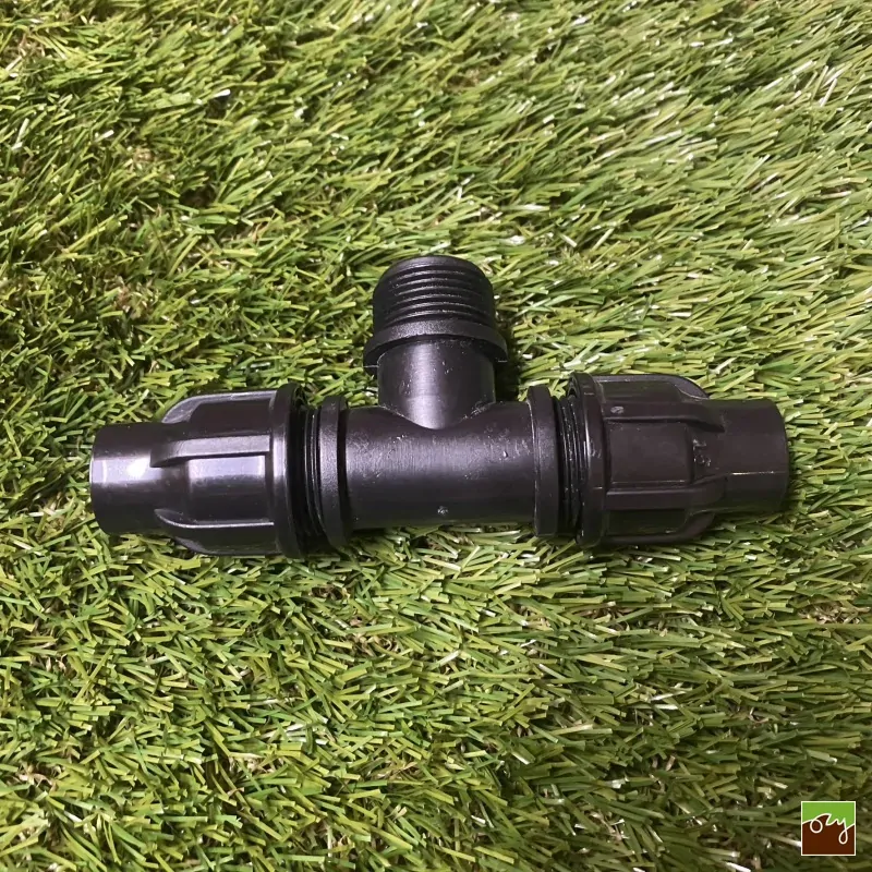 Šroubovací T-kus o průměru 16mm a 1/2“ vnějším závitem je určen k větvení kapkovacího potrubí a LDPE potrubí. Pomocí šroubovacích matic na T-kusu je upevnění hadic velmi rychlé a snadné. T-kus je vyroben z kvalitního, odolného materiálu.