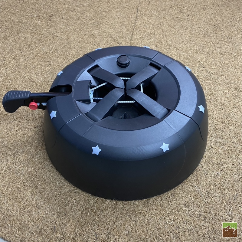 Jednolanový stahovací mechanismus se 4 upínacími segmenty a nášlapným zatahovacím systémem s automatickým jištěním rovnoměrně vycentruje kmen. Stromek upevníte rychle a přesně, bez nakřivení.