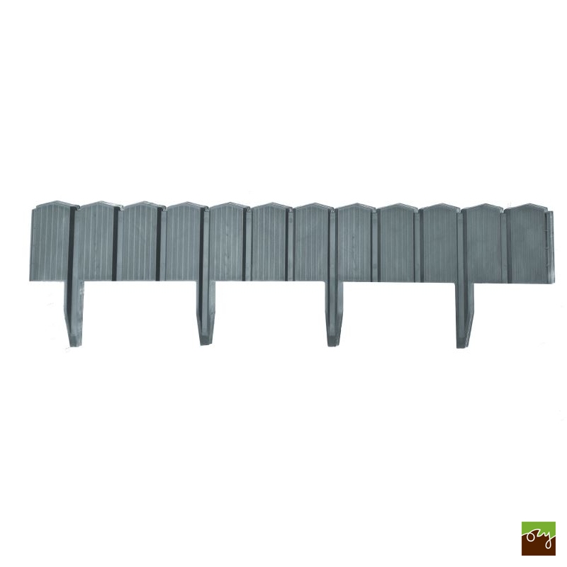 Zahradní palisáda OZY-edge o délce 3,14m antracitové barvy sestává ze 4 samostatných kusů a je určena k rychlému oddělení zahradních záhonů, bez nutnosti výkopových prací.