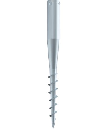 Zemní šroub pro vložení sloupku. Se závitem upevnění. Plotový sloupek upevníte štěrkem.