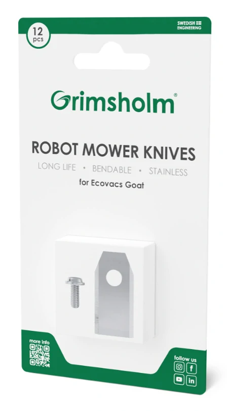 Sada 12ks nožů pro robotické sekačky Ecovacs Goat jsou vyrobeny z nerezavějící oceli a optimalizovány pro ideální rovnováhu mezi pevností, ostrostí a odolností vůči opotřebení, čímž zabezpečují prvotřídní výsledek sečení.